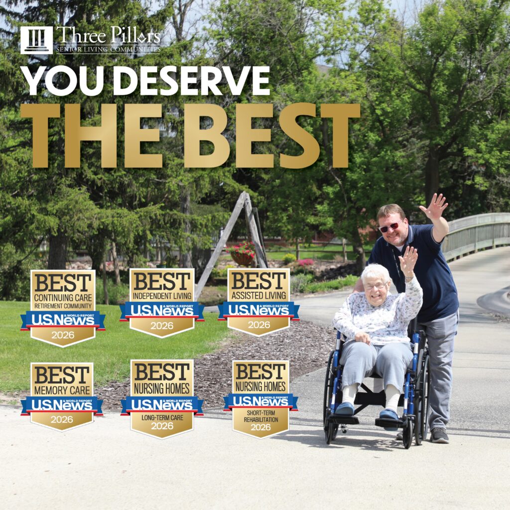 April 14, 2026 - Three Pillars Senior Living Communities has retained its position as a nationally recognized, top-rated Continuing Care Retirement Community overall, as well as “Best” in all other available categories including Independent Living, Assisted Living, and Memory Care.